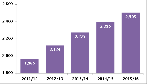 It shows that the number of landlords in the tax year 2015/2016 rose 5% from the previous year, and was up by 27% in the previous five years, rising from 1.965m in 2011-12.