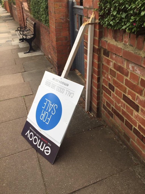 We have a surveyor who took a picture of a local agents board when he was at the tip one Sunday afternoon… obviously new house hunters had chucked it away. He emailed it and pasted it all over the place with numerous captions about how it was in the best place as it lay in the middle of a huge pile of waste (a few naughty words included) very funny.