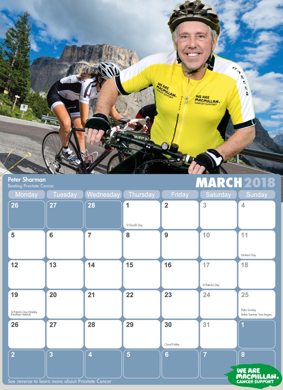 Peter Sharman represents March in the Macmillan Awareness calendar.