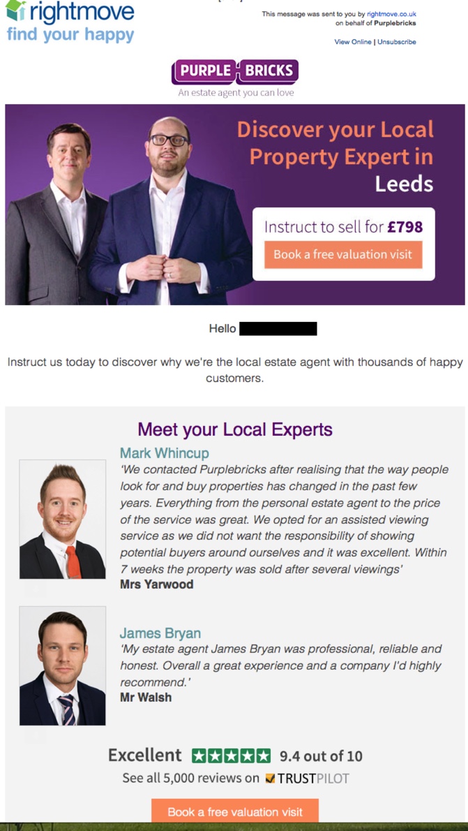 “None included personalisation within the email, so this is new for Purplebricks.