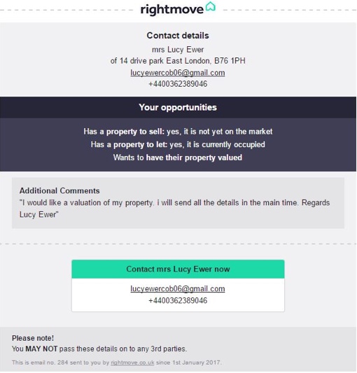 An agent is warning others of a scam that looks as though it could be targeting Rightmove users.