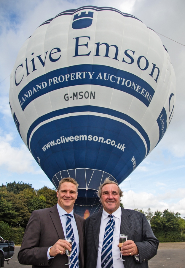 He is pictured with managing director and son James Emson in front of the company’s hot air balloon