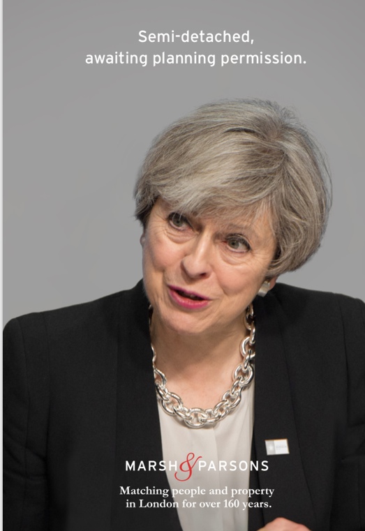 It went up in tube and train stations yesterday – and very topical it is too, while continuing Marsh & Parsons’ splendid tradition of creative, clever and striking advertising.