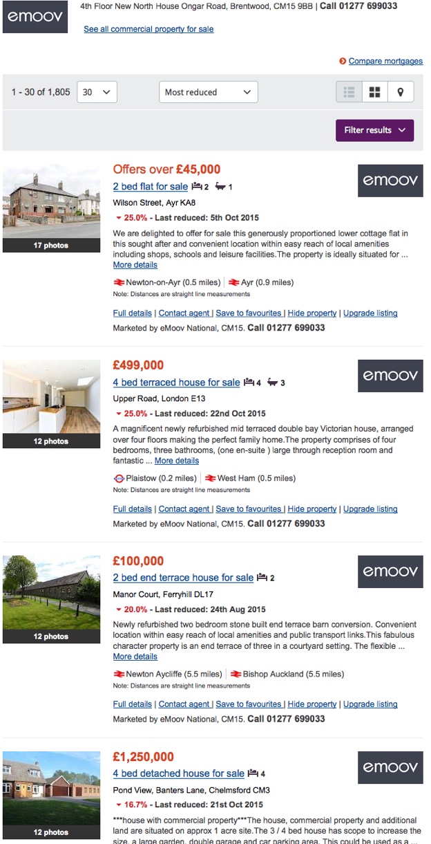That’s roughly 25% of the stock listed – not really ‘one or two properties’ as claimed by eMoov in their quote above.