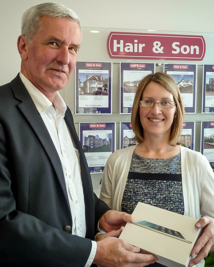 Last Thursday, Eye’s managing director, Nick Salmon, had the pleasurable task of travelling to Southend-on-Sea to present the ipad to the winner, Sue Bradley, who is personal assistant to Richard Hair, the head of Hair & Son’s five-branch Essex estate agency operation.