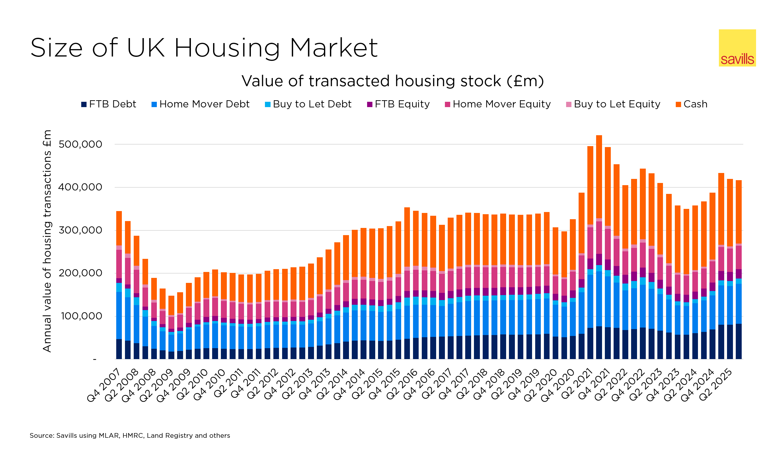 Mortgage lenders forwarded a record £82.8bn of mortgage debt to 390,000 first time buyers in the year to September 2025, according to analysis by Savills. This is a 30% increase on the previous year.