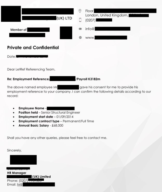 The landlord reference received was also fake and the name was recognised from another fraudulent case.