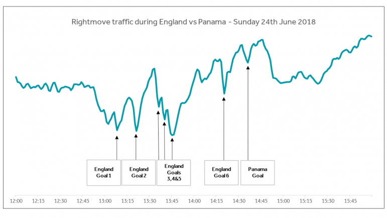 Traffic to Rightmove dipped at the exact minute each of those seven goals was scored.