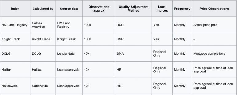 “Rightmove, Acadametrics and DCLG have the same methodology (and very similar prices), whilst other indices use one of two other methodologies.