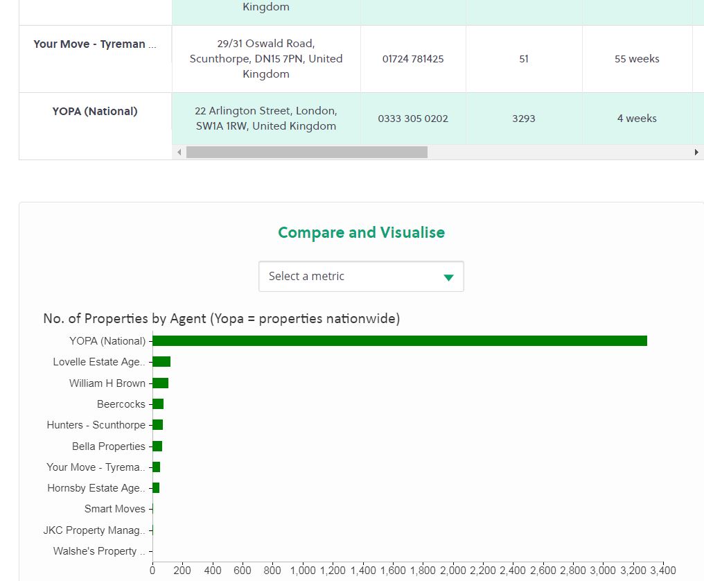 The table used Yopa’s national listing numbers – over 3,000 – at the top of the table, which showed high street agents’ far smaller local inventories.