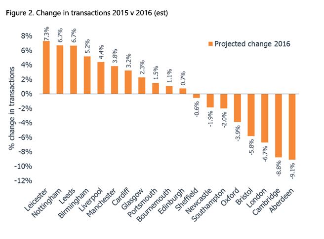Leicester is expected to record a 7.3% increase in transactions compared with last year with Nottingham and Leeds set for a 6.7% increase.