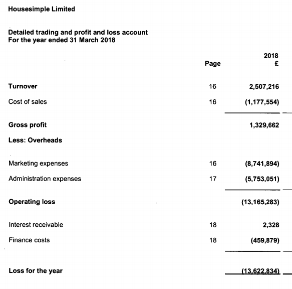 Housesimple, the online agent heavily backed by Carphone Warehouse founder Sir Charles Dunstone, lost almost £13.5m according to its latest accounts.