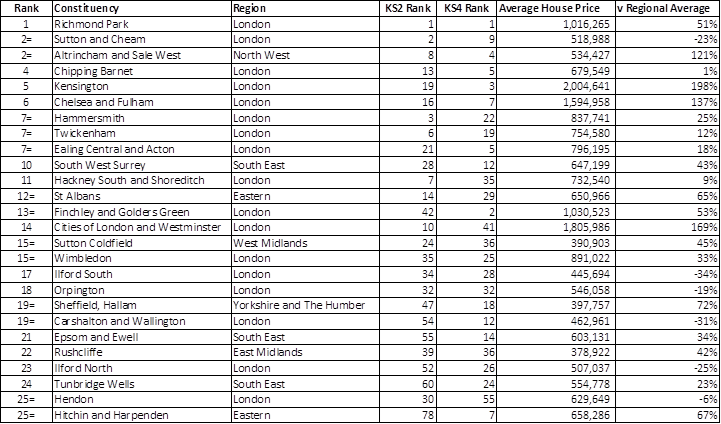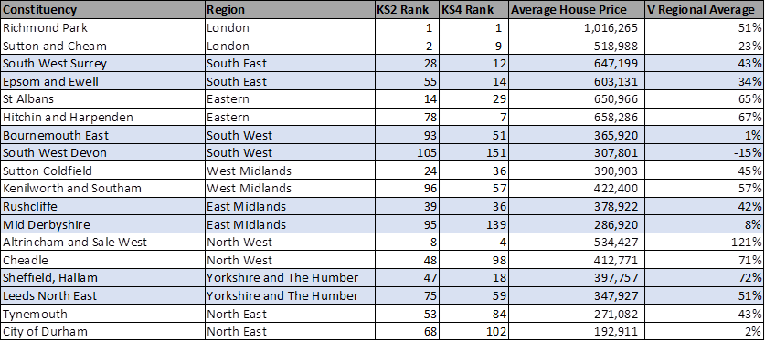 Savills analysis looked at the average Key Stage 2 and Key Stage 4 (GCSE-level) results from the Department for Education (DfE), for all students living in each constituency, which provides a general picture of how well students are doing academically in each area.