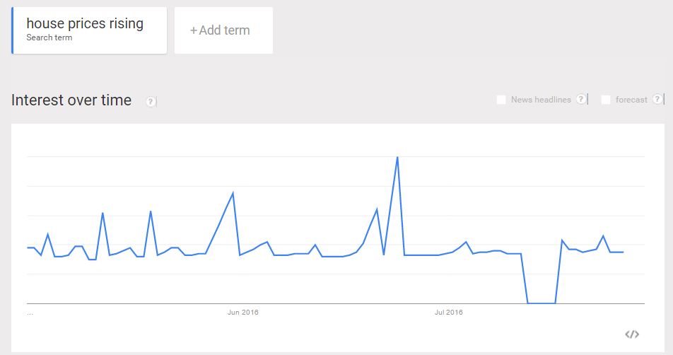 So it appears that there may be more concern over house prices falling than rising among those trawling the internet.