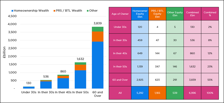 Savills estimates this group has £3.84trn in housing equity, including £2.92trn in main residences, £0.62trn in buy‑to‑let properties, and £0.29trn in other residential holdings.