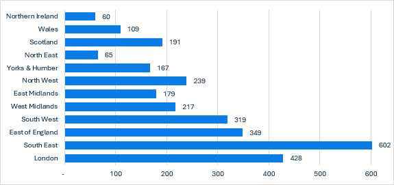However, owner-occupier wealth among the over 60s is highest in the South East, home to lifestyle hotspots favoured by retirees. Here over 60s hold £602bn of housing wealth. This is as much as Scotland, the North West  and Yorkshire & the Humber combined.