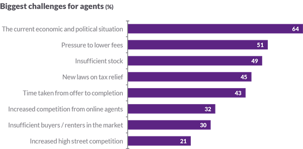 This is despite concerns over the economy felt by 64%, followed by pressure to lower fees £51%) and lack of stock (49%).