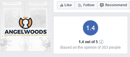 AngelwoodsAgent, in Cwmbran, Wales, yesterday evening tweeted: “You may have noticed that our Facebook reviews have taken somewhat of a nosedive over the last day or so.”