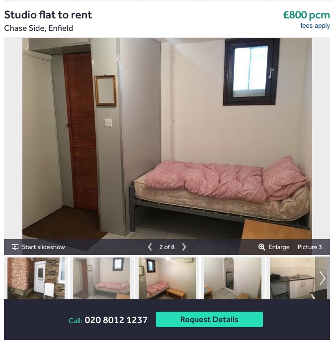 Well, that’s what the particulars say of this studio flat in Enfield.