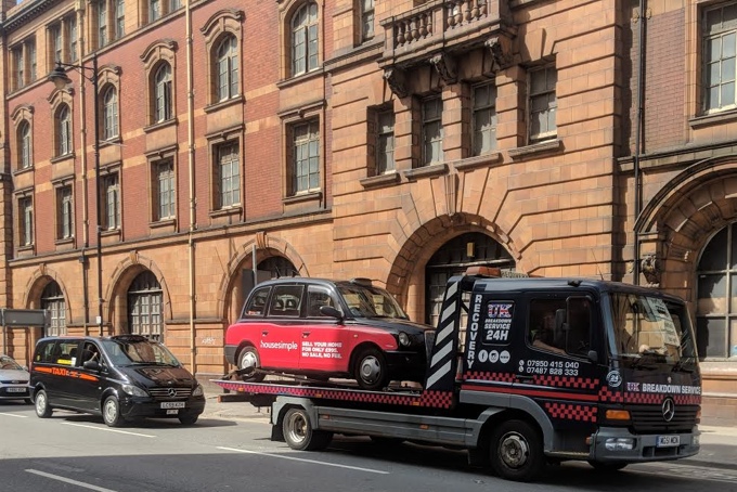 Certainly it would never have occurred to online agent Housesimple when it decided to go for branding on a taxi how it might look if the vehicle conked out.