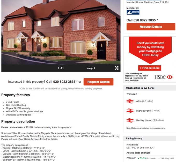 It was first listed on May 2 at £277,500, and less than three weeks later the price shot up to £370,000.