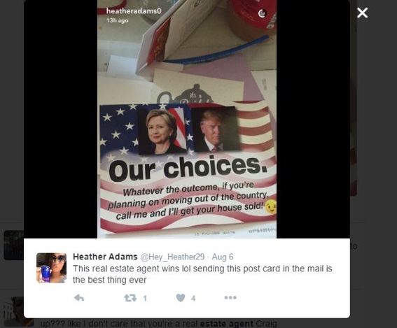 Never an industry to miss a marketing opportunity, one canny realtor is touting with leaflets offering to sell the property of those looking to flee the country if they are unhappy with the result.