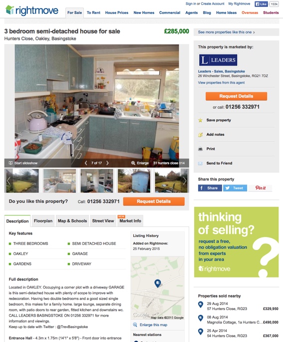 Any self respecting firm wouldn’t take instructions to sell a place like this, let alone advertise it with such a dreadful photograph. Shame on both client and agent.