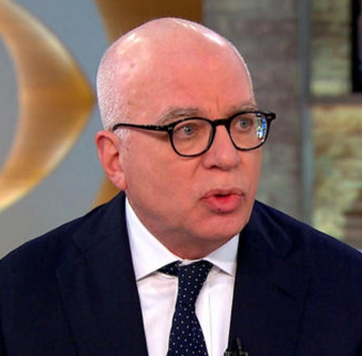 Immediately below is Trump biographer Michael Wolff, addressing the White House press pack.