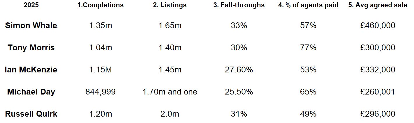 Love to see these figures and how predictions shouldn’t be quotes as they are mostly wrong. Crystal ball required!! However I’m not sure about the maths? If there were 1.71m listings and 1.2m completions that’s 70.2% ratio. So how is it that agents only got paid on 55.3%? I may well be mid-interpreting the figures over my toast and coffee!! Happy New Year!!