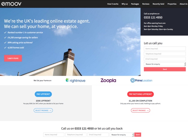 eMoov by contrast charges £595 including VAT upfront, or a flat rate £1,195 on completion.
