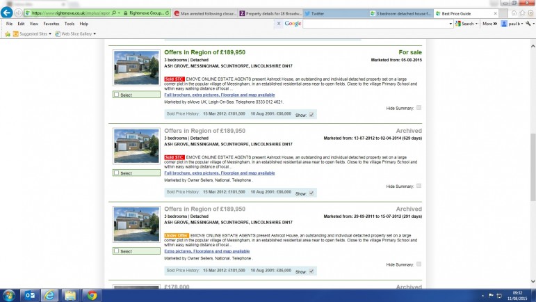 Okay… so would ‘eMove UK’ care to answer why, then was the property listed by them the SECOND time, on 13 July 2012 – TWO DAYS before it is listed as being sold via Land Registry – and stayed on Rightmove for a further SIX HUNDRED AND TWENTY SEVEN DAYS until being removed on 2/4/14?
