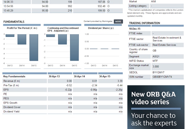 The “fundamentals”, which show revenue to April 30 this year at £3.39m, with a pre-tax loss of £5.44m, are in the screengrab below.