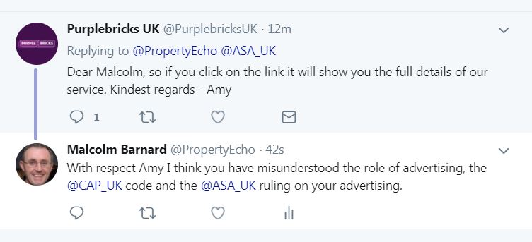 He took this up with Purplebricks on Twitter – but had what he calls an “interesting” reply.
