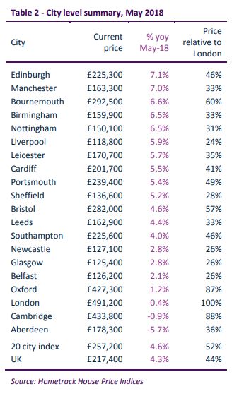 Edinburgh topped the tables with growth of 7.1% to £225,300, closely followed by Manchester which was up 7% to £163,300.