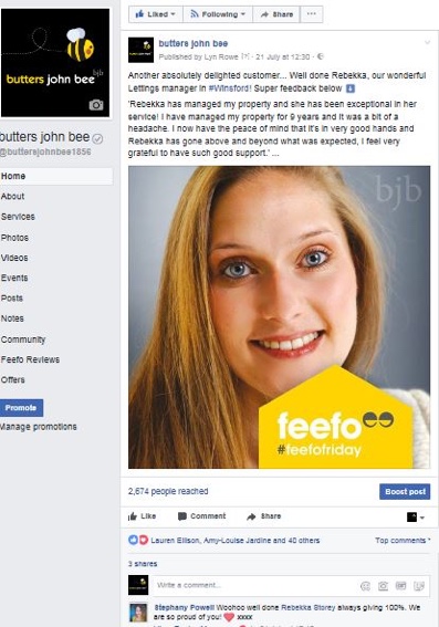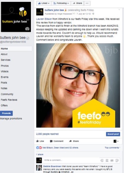 Each Friday, from its reviews on the feefo site, the favourites are chosen and posted up on Facebook.