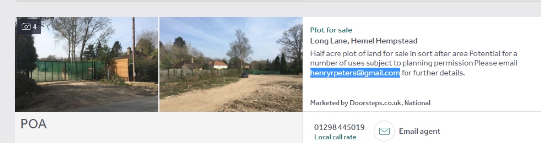 The property was a plot of land in a “sort after area” being marketed by online agent Doorsteps, which charges sellers from £99.