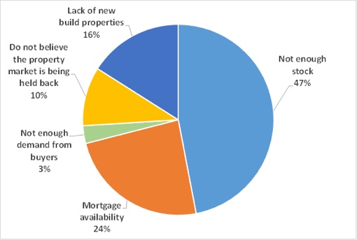 Out of 159 respondents to a survey last week by conveyancing firm myhomemove, 47% believed that lack of stock is holding back the market.