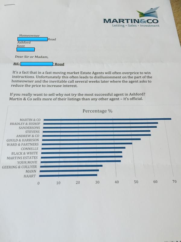 Andrew & Co was one of several agents in Ashford, Kent, named in the letter, which has a chart showing that Martin & Co apparently sell more of their listings than any other agent.