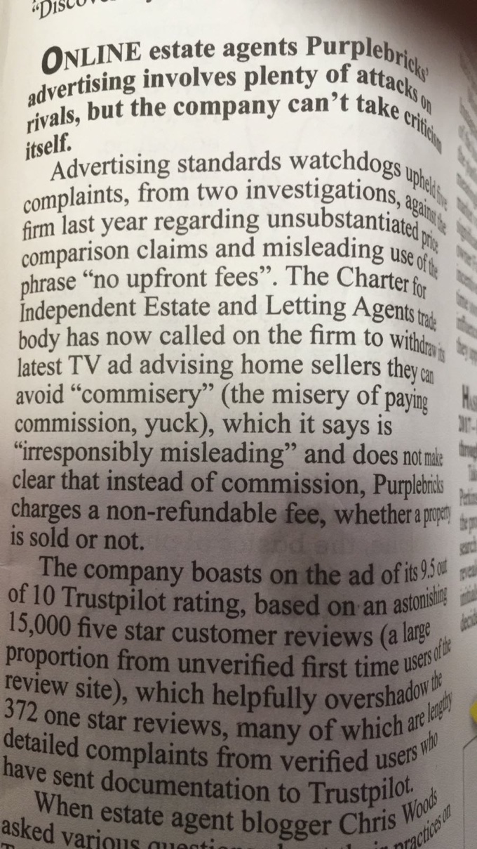 I haven’t yet read the Private Eye article but have been contacted by/ been in conversations with a number of very highly regarded journalists over the past few months, some of which has been published and reported on in PIE. That these concerns are being taken seriously by mainstream media (some of whom have also received legal threats from Purplebricks) suggests that this is an issue that has legs and not just a sop to pacify some gobby agents and industry supplier.