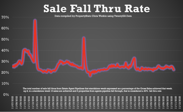 + 9.1k reductions this week, lower than last week’s at 12.8k (Estate Agents seem to forget they can reduce houses prices after the first week in November!). 23.2k is the average weekly number of reductions for 2025.