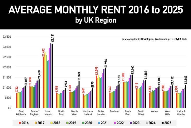 + Average Rent in November – £1,792 pcm – compared to £1,798 in Nov 2024 and £1,405 in Oct 2017.