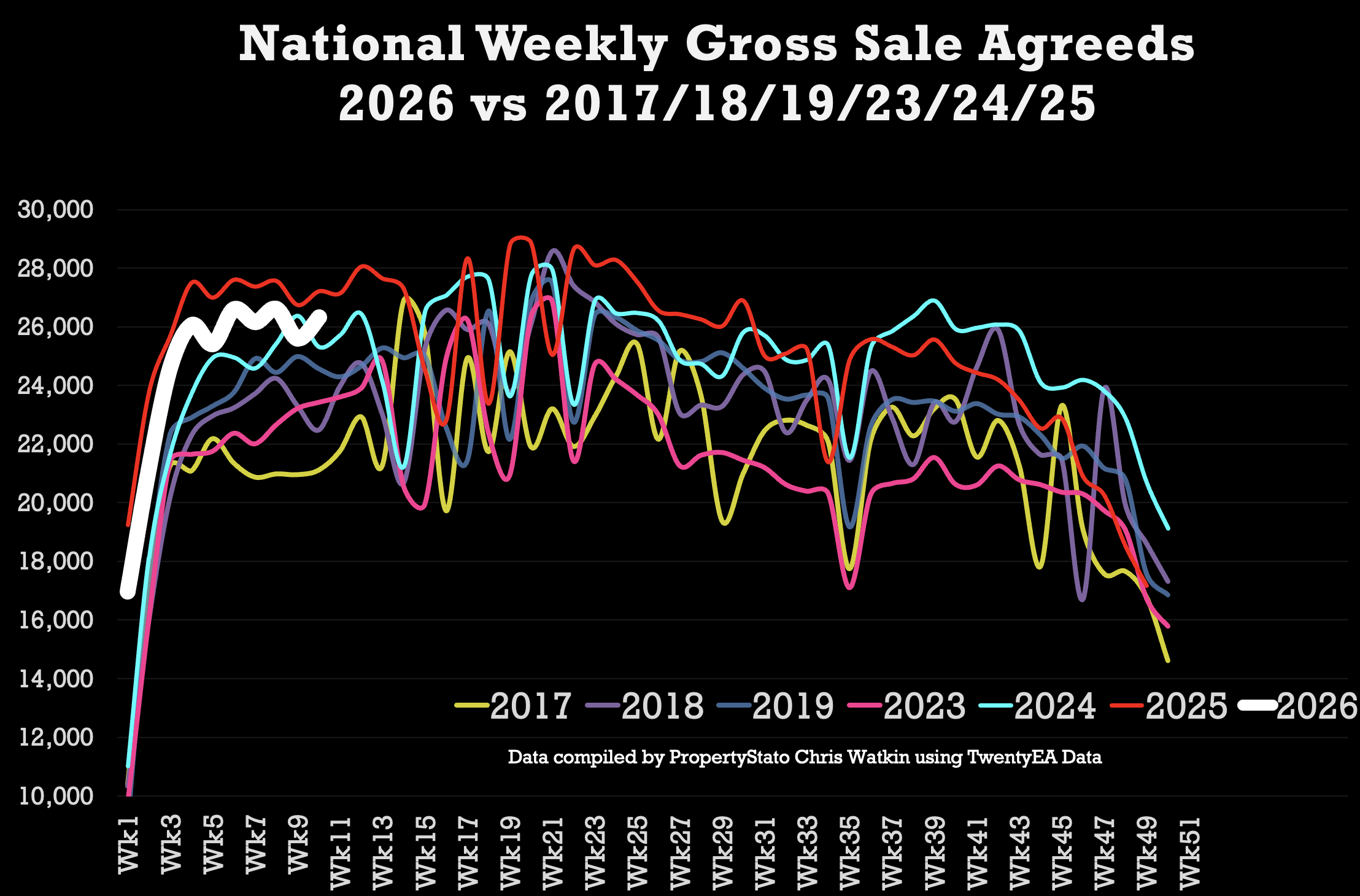 246k UK homes sold STC YTD , 3% lower than 2025, 8.4% higher than 2024, and 14.1% above pre Covid norms.