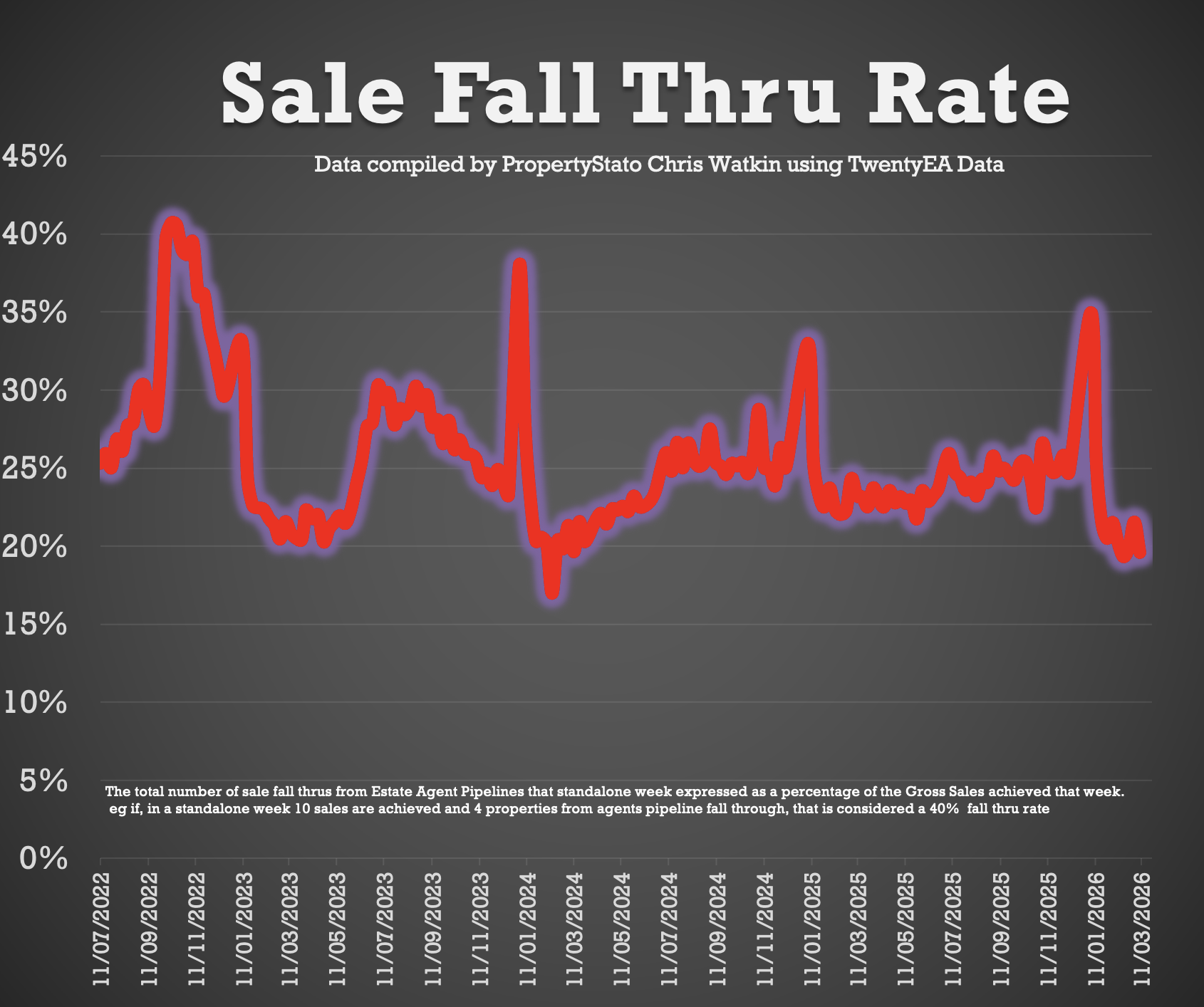 • 4.9% of all the sales agreed in Estate Agent’s Sales pipelines fell thru in February 2026. 2025 average – 5.3% & 10 year average – 5.8%).