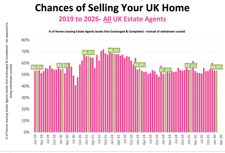 46.1% of the homes that left UK Estate Agents books in February were withdrawn unsold. Main cause – blatant overvaluing supported by long sole agency agreements of 20+ weeks.