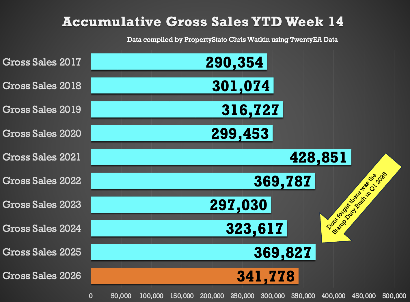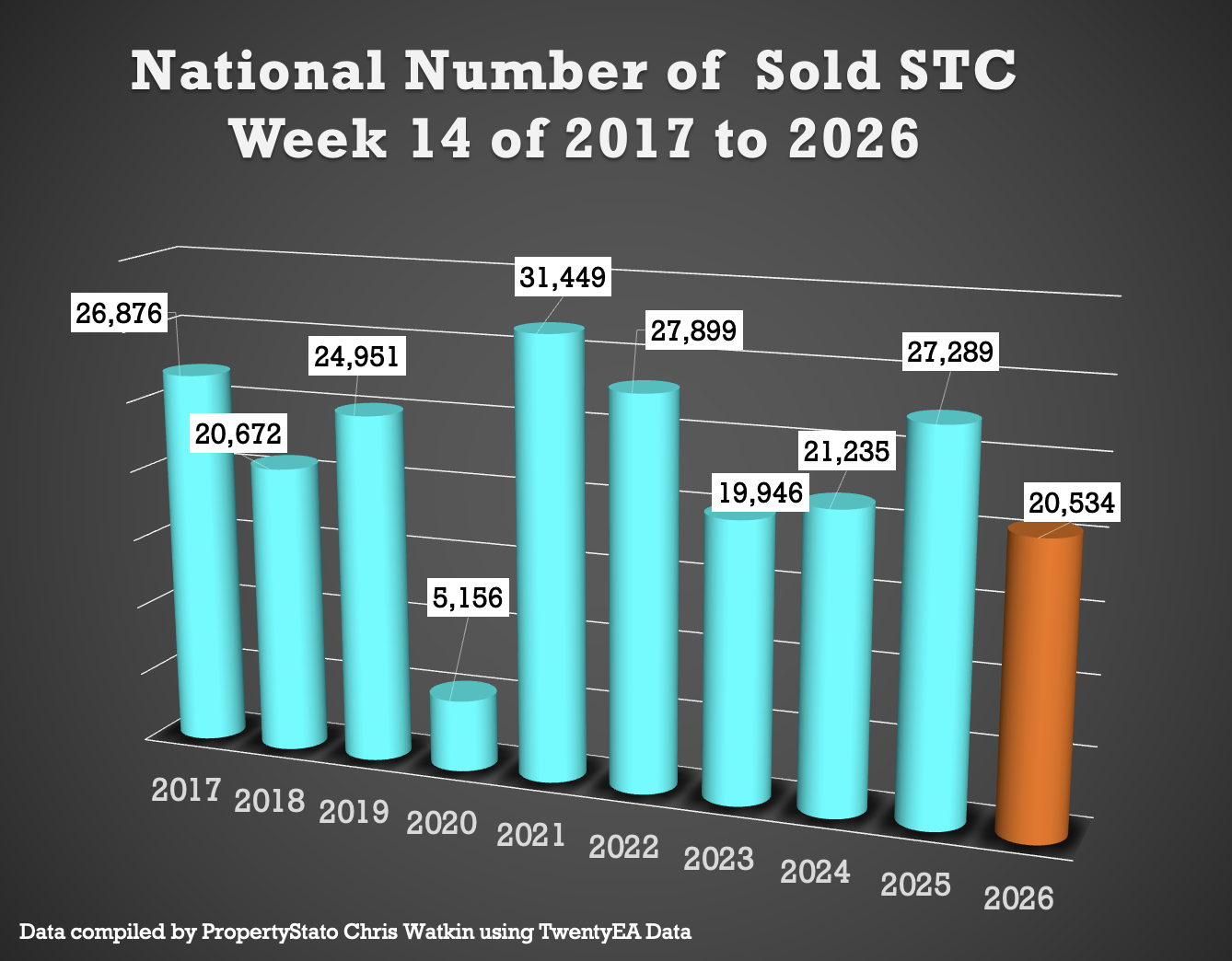 • 20.5k homes sold stc this week 14, down from 24k last week (remember its Easter look at the graph this always happens Easter week).