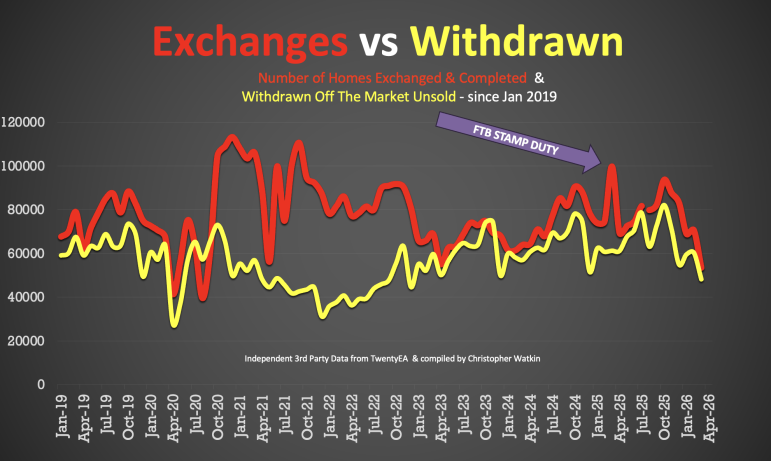 Note there were more exchanges in Q1 2025 because of the stamp duty holiday finishing in April 2025.