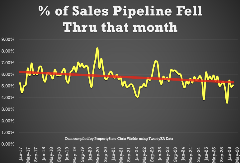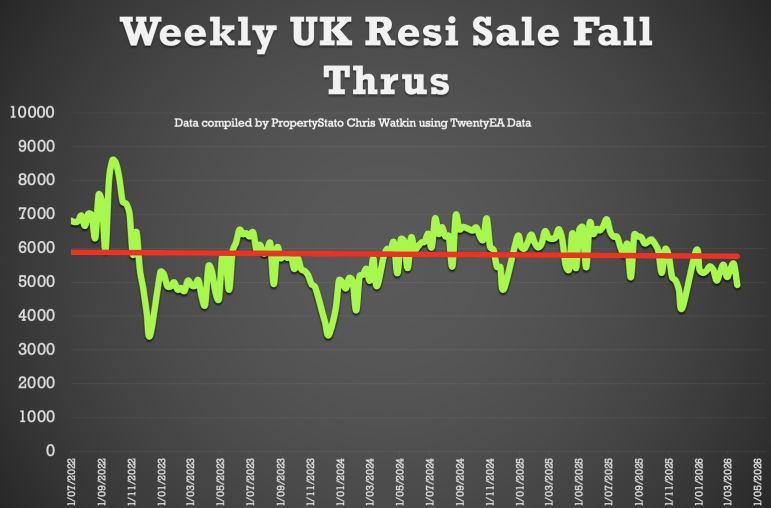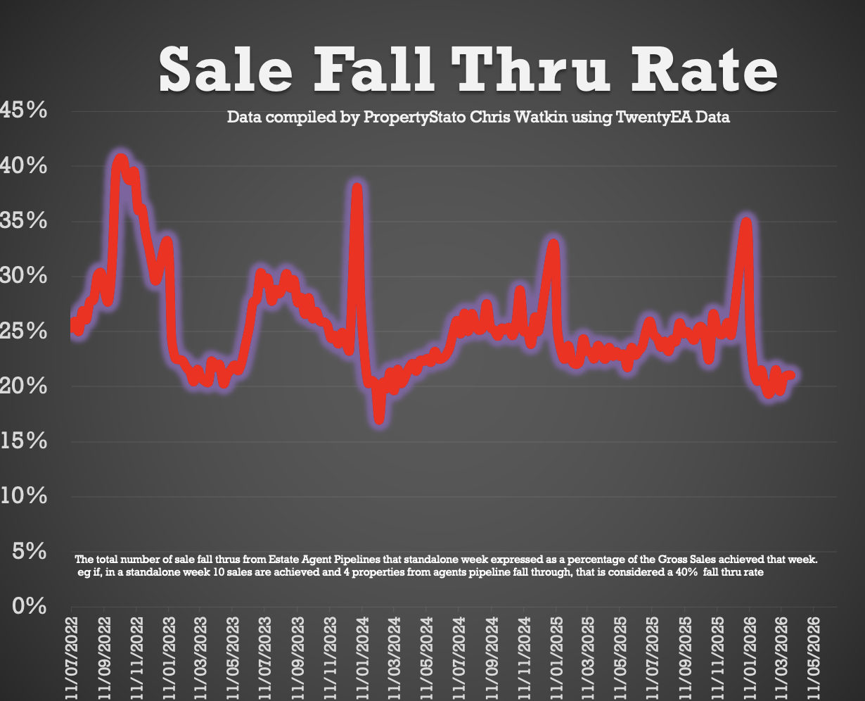 • 5.1% of all the sales agreed in Estate Agent’s Sales pipelines fell thru in March 2026. 2025 average – 5.3% & 10 year average – 5.8%).