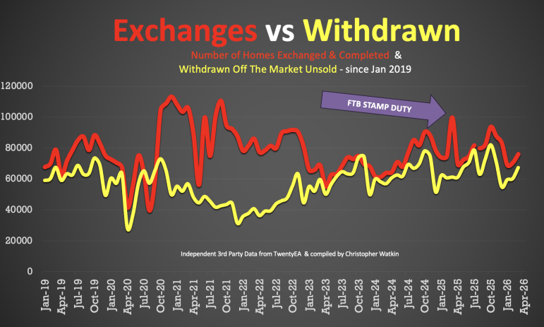Note – There were more exchanges in Q1 2025 because of the stamp duty holiday finished in April 2025