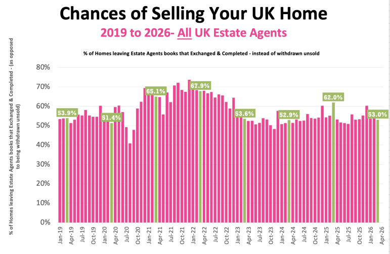 47% of the homes that left UK Estate Agents books in March were withdrawn unsold. Main cause – blatant overvaluing supported by long sole agency agreements of 20+ weeks.