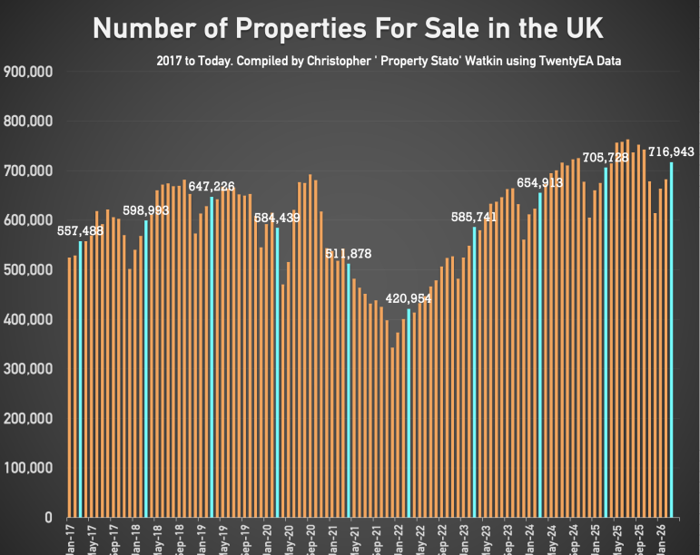 • 717k homes on the market on the 1st of April ’26. (706k – 1st April 25)